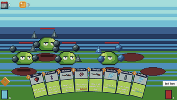 I am not very good at or experieced with card games, but I think this is pretty neat. It does feel fast paced, the sounds are well chosen. But, I was not always 100% sure of what I was doing. It would also be nice to have a clear visual distinction between player and enemy.